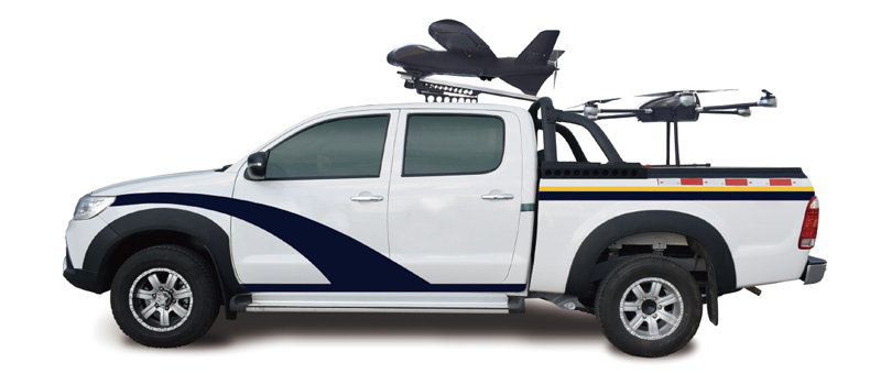 皮卡型無人機指揮車集成了固定翼起飛系統(tǒng)、飛行控制系統(tǒng)、指揮通信系統(tǒng)、自動化裝載運輸系統(tǒng)、起降平臺等,具有集成度高、功能齊全、全智能控制等特點,可綜合滿足無人機指揮控制、裝載運輸、飛行操作 、人員遠程機動作業(yè)的需求。