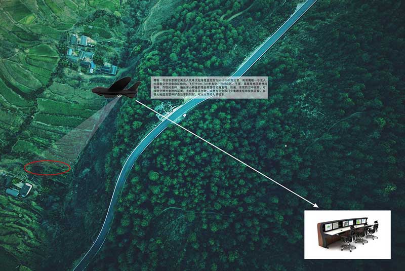 當(dāng)固定翼無(wú)人機(jī)發(fā)現(xiàn)渣土遺灑、污水偷排、廢氣排放、傾倒垃圾等破壞環(huán)境的非法行為時(shí),機(jī)動(dòng)型六旋翼無(wú)人機(jī)搭載攝像拍攝模塊,對(duì)渣土遺灑、污水偷排、廢氣排放、傾倒垃圾等破壞環(huán)境的非法行為拍攝高清晰現(xiàn)場(chǎng)照片,為后續(xù)查處提供圖證;搭載空中照明模塊,及時(shí)發(fā)現(xiàn)夜間偷排污水、廢氣等非法行為;搭載空中喊話模塊,對(duì)正在進(jìn)行的破壞環(huán)境行為實(shí)施空中喊話、警告。