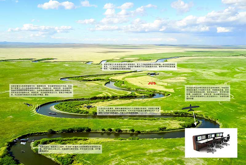 利用大航時(shí)長(zhǎng)航程的無(wú)人機(jī)可以實(shí)現(xiàn)單次大面積的巡查,而搭載熱感偵測(cè)及多光譜系統(tǒng)可以對(duì)草場(chǎng)的牲畜情況、草場(chǎng)生長(zhǎng)及過(guò)牧情況、防火防病蟲等工作采集精準(zhǔn)信息。專業(yè)的多級(jí)無(wú)中心網(wǎng)絡(luò)鏈路可以保障無(wú)人機(jī)采集到的圖像、數(shù)據(jù)等信息實(shí)時(shí)回傳至任一級(jí)指揮或監(jiān)管部門。大數(shù)據(jù)分析智能分析系統(tǒng)不但可以對(duì)一些實(shí)時(shí)信息進(jìn)行比對(duì)、分析、留證,還可以對(duì)歷史記錄進(jìn)行比對(duì)分析及預(yù)警。