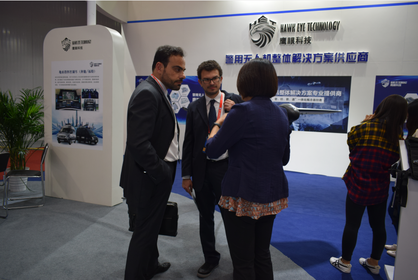 鷹眼科技工作人員為深圳無(wú)人機(jī)行業(yè)協(xié)會(huì)楊金才會(huì)長(zhǎng)講解鷹眼無(wú)人機(jī)及其方案,受到楊會(huì)長(zhǎng)的高度肯定。展會(huì)現(xiàn)場(chǎng),大量國(guó)外賓客也紛紛駐足參觀鷹眼警用無(wú)人機(jī),并對(duì)鷹眼科技的專(zhuān)業(yè)化無(wú)人機(jī)解決方案給予了高度評(píng)價(jià)。