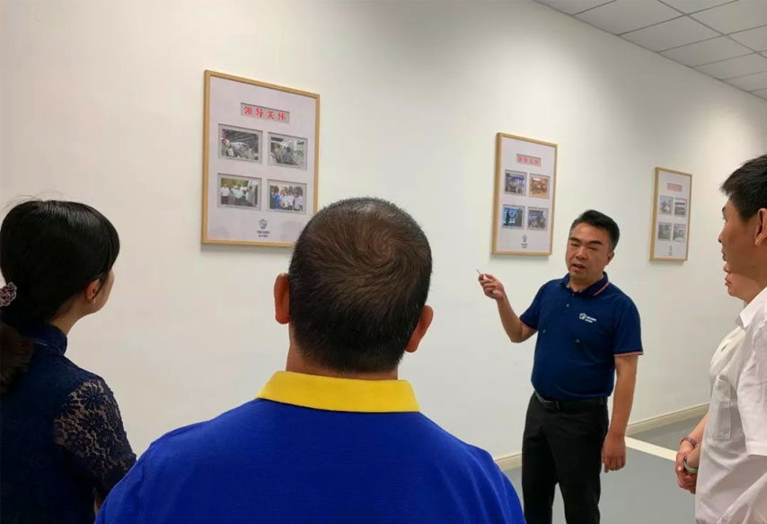 參觀過程中,基地常務(wù)副總經(jīng)理胡成浩引導(dǎo)各領(lǐng)導(dǎo)分別參觀公司的榮譽(yù)專利展示墻、整體規(guī)劃布局圖并做詳細(xì)講解。