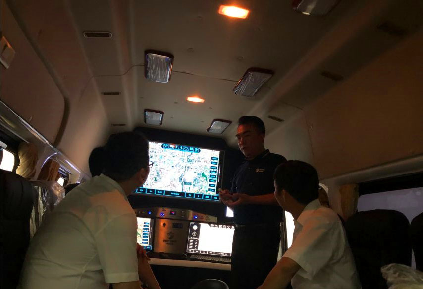 隨后,考察團(tuán)一行人由胡總陪同著重參觀了公司的展演中心及室內(nèi)無人機(jī)訓(xùn)練館,視察了公司重點(diǎn)無人機(jī)機(jī)型及各功能模塊,分別介紹了相關(guān)功能及生產(chǎn)工藝,得到了一致認(rèn)可和贊許。其中,地面無人機(jī)指揮控制車獲得了眾客戶的格外關(guān)注和深入了解。